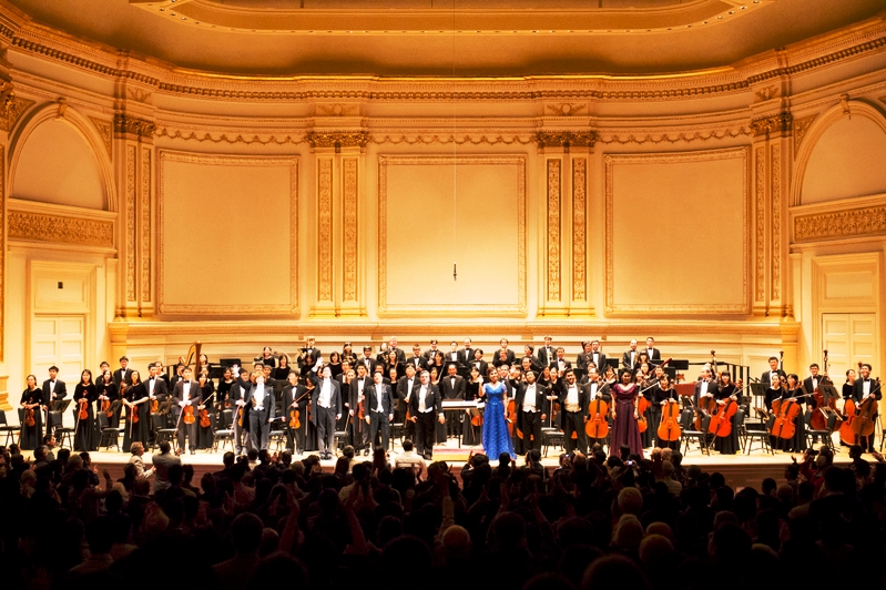 二十八日在卡内基音乐厅的演出是神韵交响乐团的世界首演,集合了神韵三个乐团的九十多位演奏家和音乐家,三位指挥家联袂登台,并有神韵四名著名歌唱家登台献唱,阵容强大、气势恢宏。