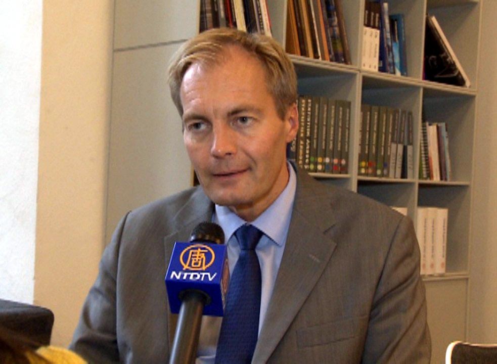 ![]() 丹麦议员彼得·斯高如普就中共活摘器官一事,接受新唐人电视台记者采访 |