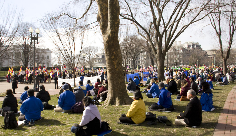 ![]() 数百名法轮功学员聚集在白宫外静坐抗议,抗议中共对法轮功的迫害,要求全面停止对法轮功的迫害,法办迫害法轮功的元凶江泽民等罪犯。 |