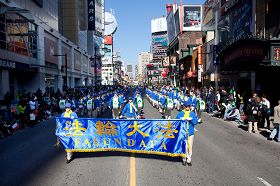 来自台湾的邓先生,在广东经商,刚到多伦多4个月,他对着乐团很认真的录像,从队伍的开头一直录像到队伍的最后,他说:“非常的震撼人心!法轮功很正气!我知道法轮功到处都有,台湾有,香港有,大陆有,大陆以外的很多国家都有,但只有大陆在迫害。我从来没有把他们跟政治联系上,因为我有一些法轮功的朋友,我知道他们都是很好的人,我也知道他们在做着什么。我知道法轮功是对人身心都是有好处的,所以我非常的敬佩他们。”