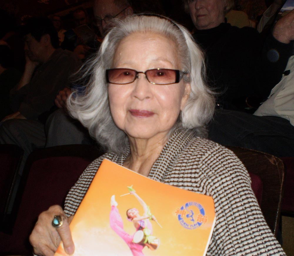 八十五岁的星野雅子(Masako Hoshino)是位画家,也教授日本传统舞蹈。中场休息时,她端坐在自己的座位上,显然还沉浸在神韵带来的震撼中。“真是太美好的一场演出,”谈到观感,星野女士难掩激动的心情,忍不住热泪盈眶,“开场的第一个节目一下子就打入我的内心深处,让我受到巨大的震撼。真的是太美了!”