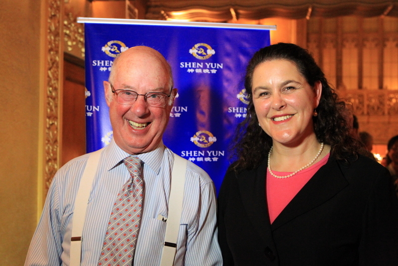 澳大利亚著名音乐家、指挥家,国家勋章获得者道格拉斯•何伍德(Douglas Heywood)先生去年欣赏神韵时,就为神韵卓著的艺术形式和高尚的内涵所折服,今年他再度携夫人卡梅纶(Alexandra Cameron)女士观赏了这“世界第一秀”。