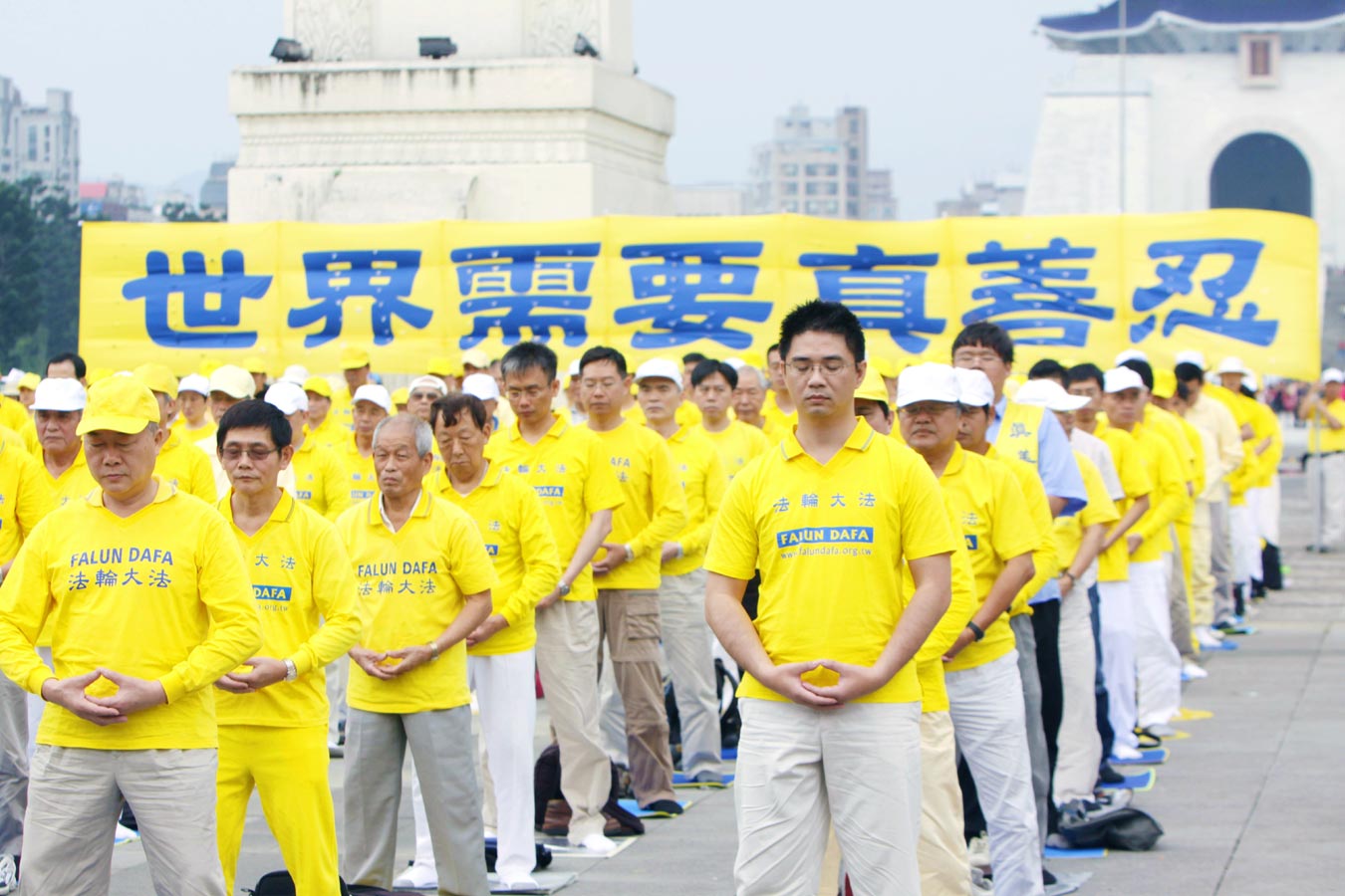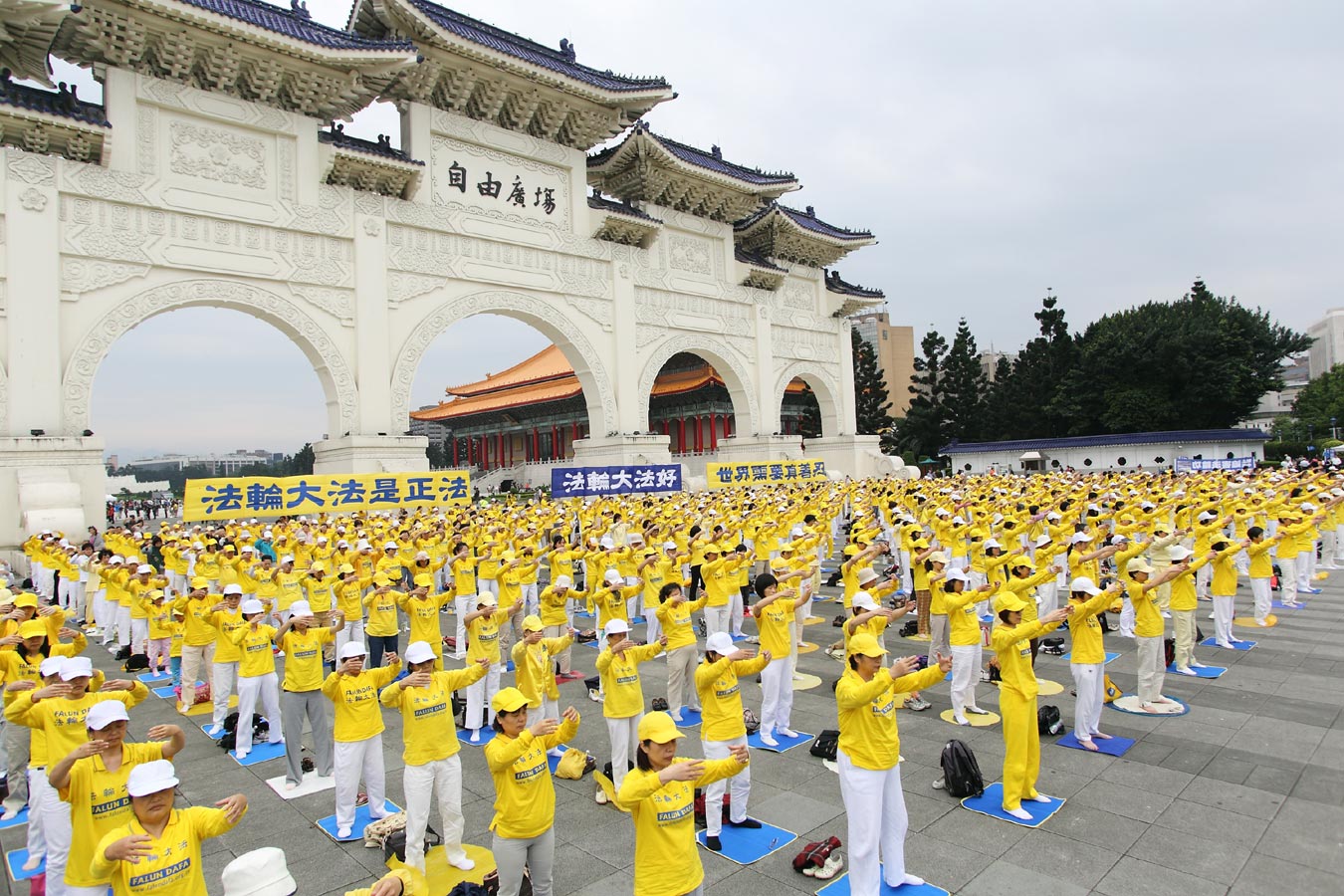 '法轮功学员集体炼功'