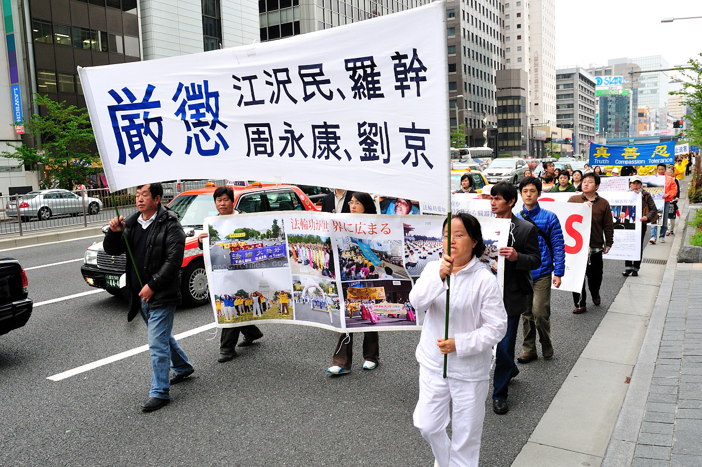 经过三个多小时,游行队伍下午五点许抵达终点中联办,随即在中联办正门前张起“结束迫害 法办元凶”及法办江泽民、罗干、周永康、刘京等迫害元凶的幡旗,并且宣读声明,圆满结束今次活动。江泽民集团迫害法轮功罪责难逃(二)