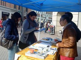 为纪念“四•二五”上万名法轮功学员北京和平上访十三周年,二零一二年四月二十五日下午,德国部份法轮功学员在德国南部城市海德堡举办了信息日,告诉人们法轮功的真相,并呼吁制止迫害。