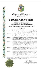 二零一二年四月二十五日,加拿大卑诗省潘提克顿市市长宣布五月为“法轮大法月 颂扬真、善、忍”。