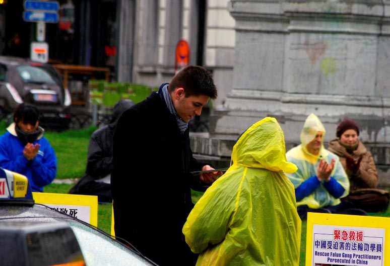 活动中,比利时法轮大法学会负责人尼古拉斯·施厚斯先生(Nicolas Schols)表示:“自从迫害开始,法轮功修炼者和平的向全球的各个政府和人民呼吁,唤醒人们的善良本性,来制止这场迫害。江泽民、周永康和薄熙来的恶行,一定会让他们受到正义的审判。我们鼓励所有善良的人们、正义的人们、以及中国政界的人士,让正义行使世间。”