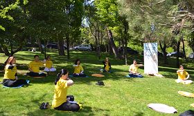 为纪念十三年前逾万名中国法轮功学员和平大上访,秉承“四・二五”和平理性的精神,二零一二年四月二十九日,土耳其法轮功学员在伊斯坦布尔市游人颇多的YILDIZ公园,举行了洪法炼功及传播真相的活动。