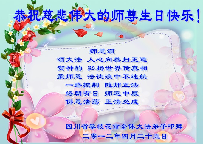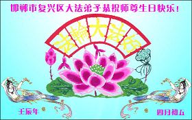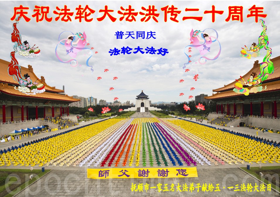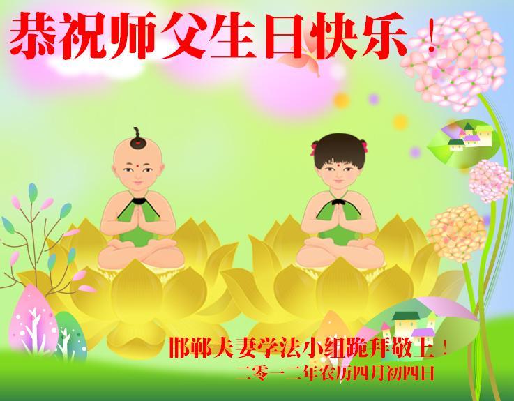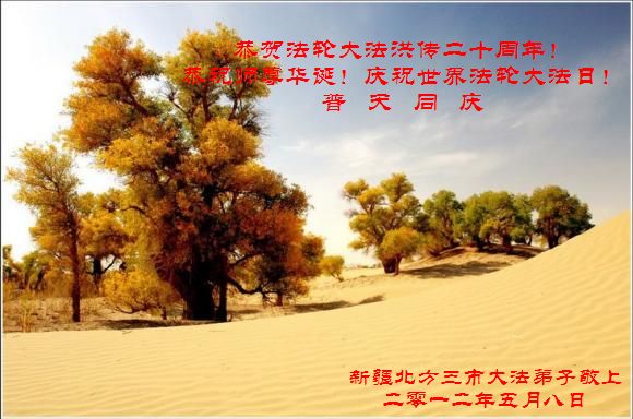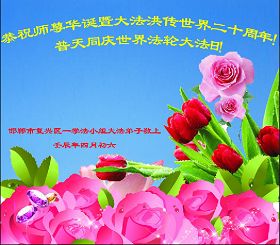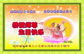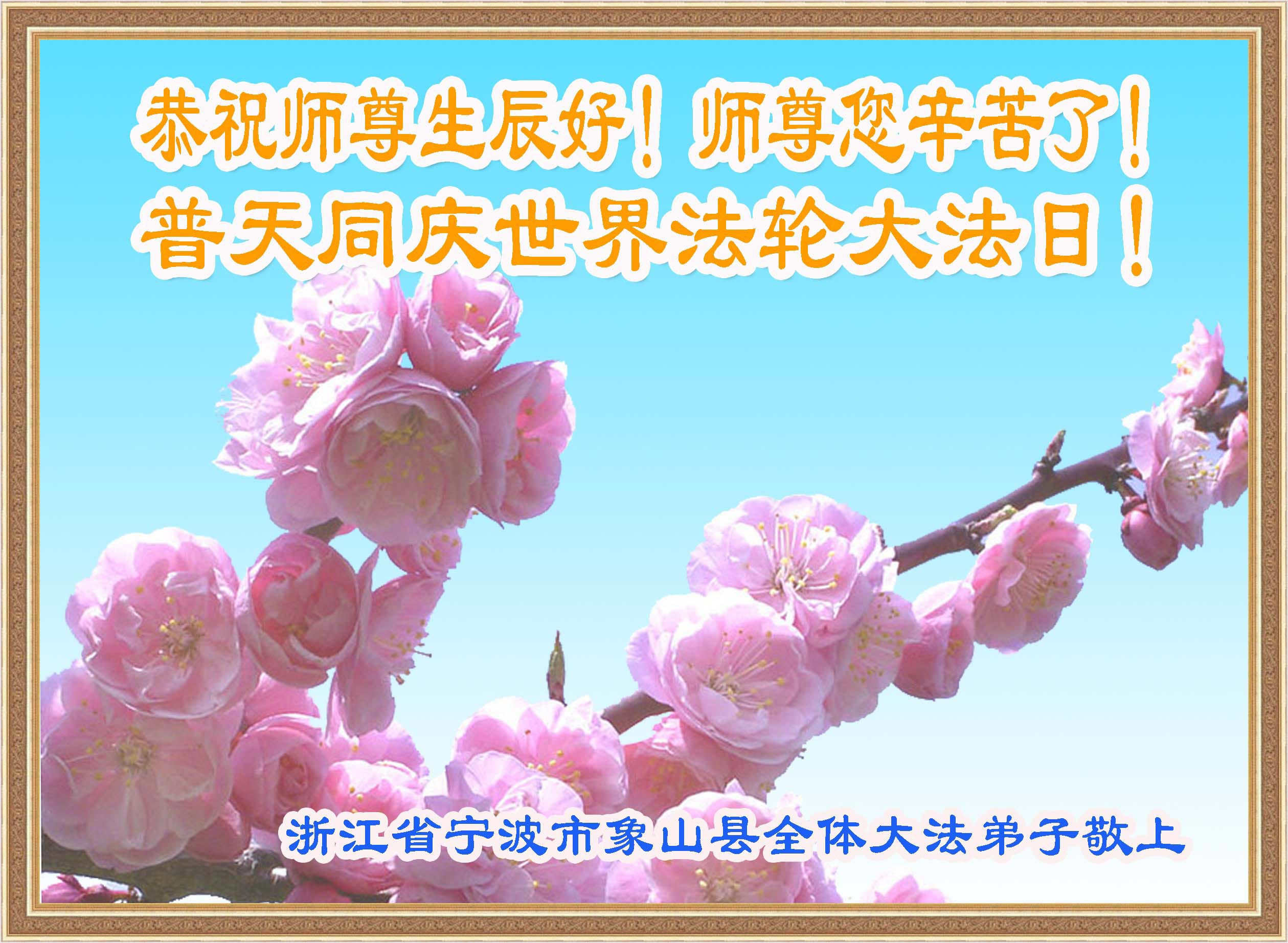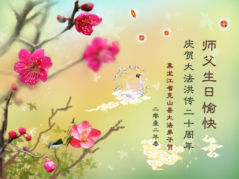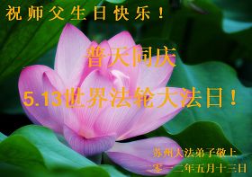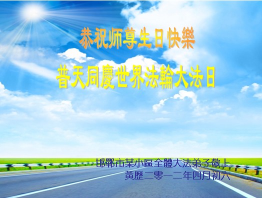 【明慧网二零一二年五月十日】二十年前的五月,李洪志师父在中国长春将法轮大法公开传出于世,二十年后的今天,法轮大法洪传全球,亿万修炼者在大法“真善忍”的指导下道德升华,获得身心健康。十三年来,每年的五月十三日,世界各地的法轮大法弟子,都向明慧网寄来贺卡贺词,庆祝“世界法轮大法日”,恭贺师尊华诞。这里是明慧编辑部已整理出来的部份来自中国大陆华东地区大法弟子的贺卡、贺信。