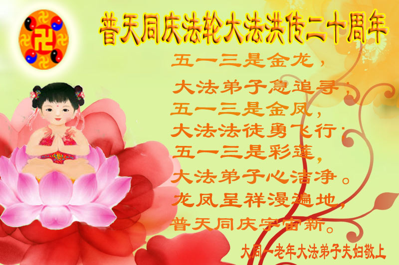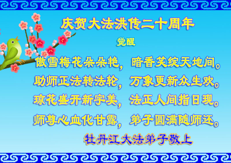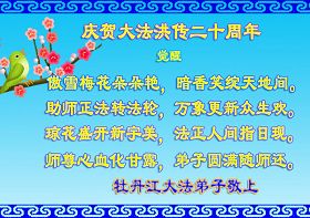 在大法洪传二十周年之际,弟子对师父的感恩之心难以言表,谨以几首诗词敬上,寥寥几句以表弟子对师父的感恩之心。山东德州大法弟子,合十!