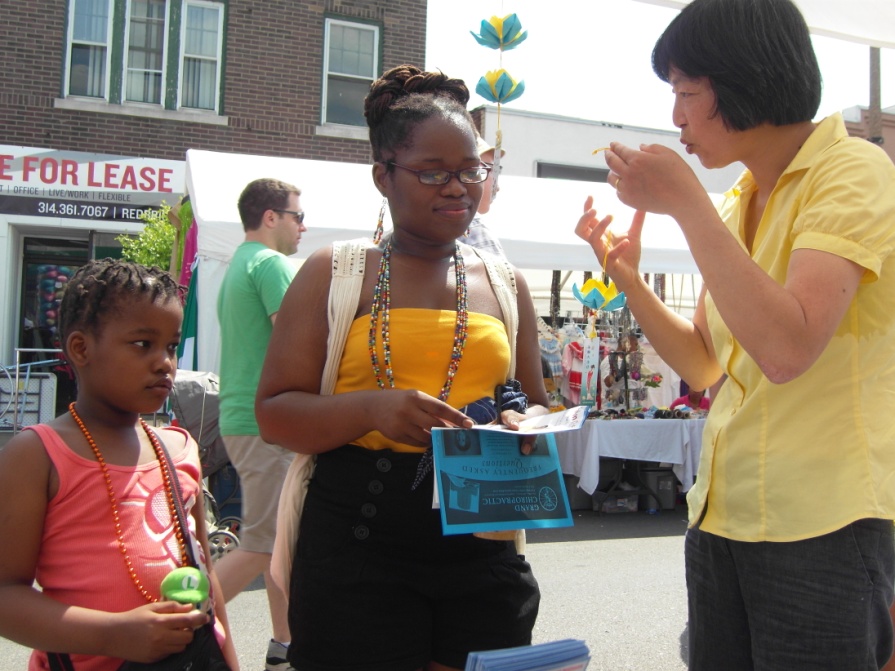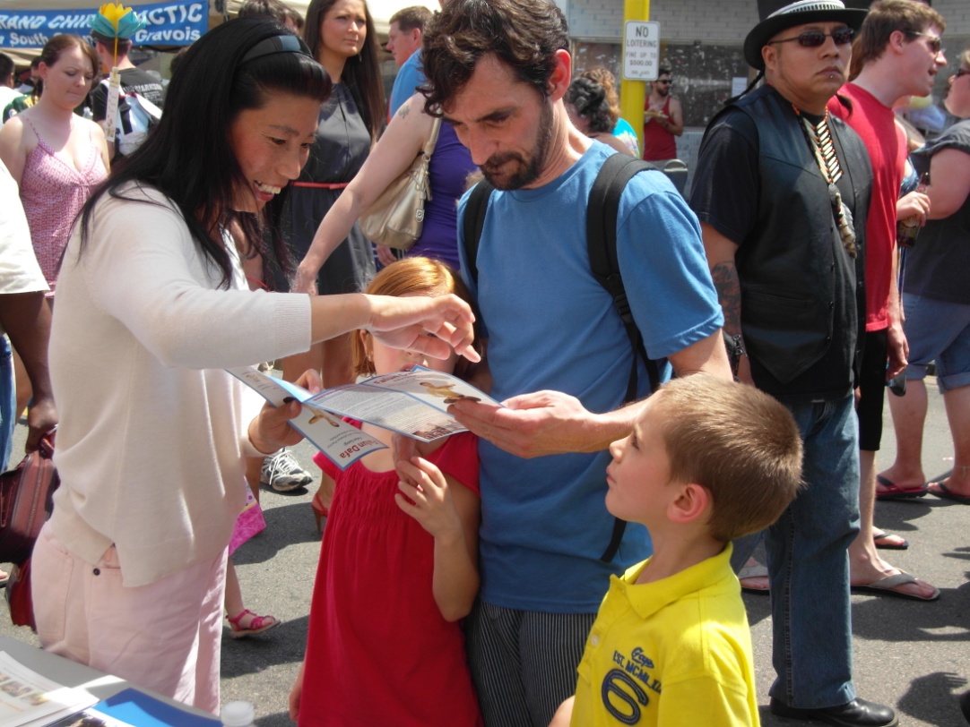 ![]() 中国旅游者在展板前驻足,了解法轮功真相 |