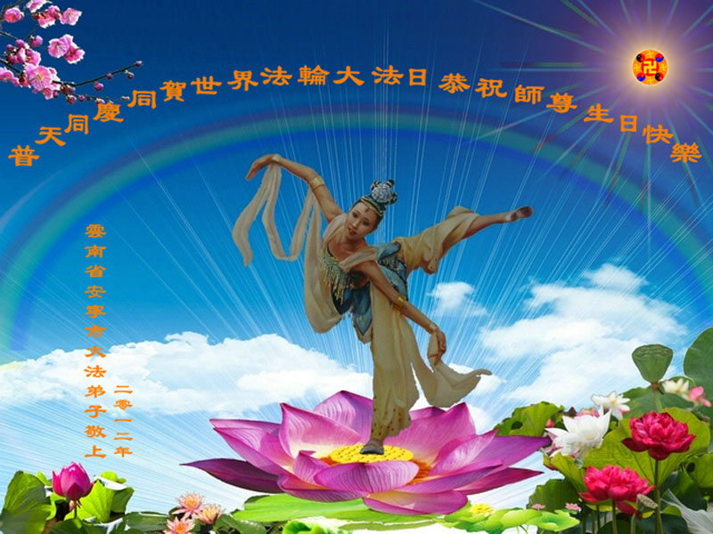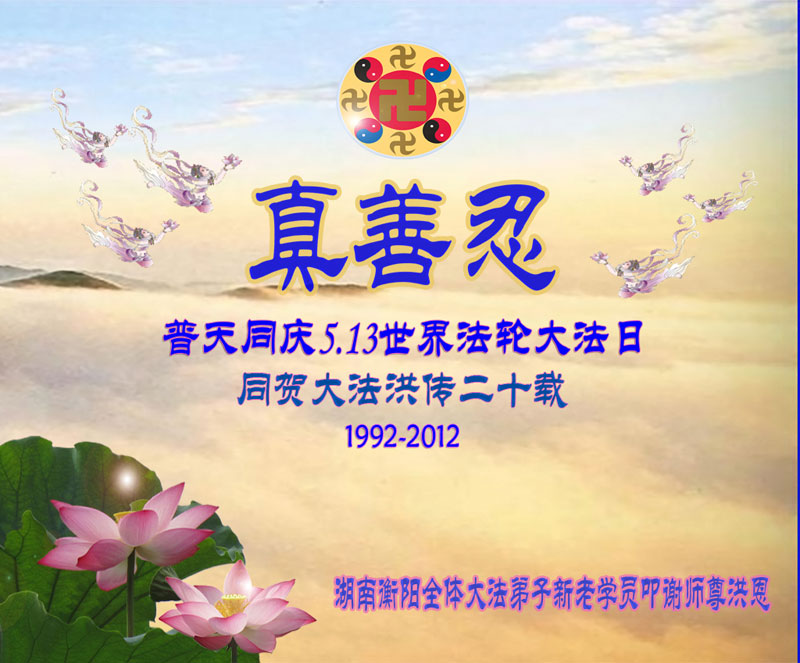 【明慧网二零一二年五月十一日】今年的五月标志着法轮大法洪传于世二十周年。大法修炼者通过对“真、善、忍”大法法理的实践而获得身心健康。为感恩师父的慈悲,十三年以来,每年的5月13日,世界各地的法轮大法弟子,都向明慧网寄来贺卡贺词,恭贺师尊华诞,并庆祝“世界法轮大法日”。这里是明慧编辑部已整理出来的教育系统大法弟子的来信汇编: