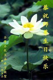 每年的5月13日,世界各地的法轮大法弟子,都向明慧网寄来贺卡贺词,恭贺师尊华诞,并庆祝“世界法轮大法日”。