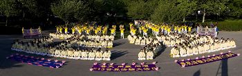 炮台公园法轮功排字炼功展现大法美好(图)