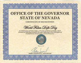 内华达州州长布莱恩·桑多瓦二零一二年五月十三日颁发褒奖证书,祝贺世界法轮大法日。