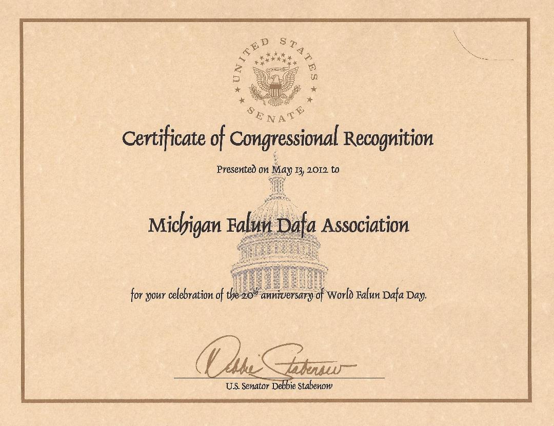 美国参议员Stabenow祝贺大法洪传二十周年