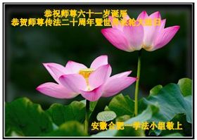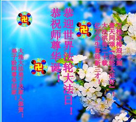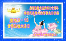 每年的5月13日,世界各地的法轮大法弟子,都向明慧网寄来贺卡贺词,恭贺师尊华诞,并庆祝“世界法轮大法日”。