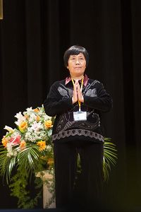 法会开始,主持人代表全体参加法会的大法弟子和全世界大法弟子及芸芸众生恭祝慈悲伟大的师尊生日快乐。