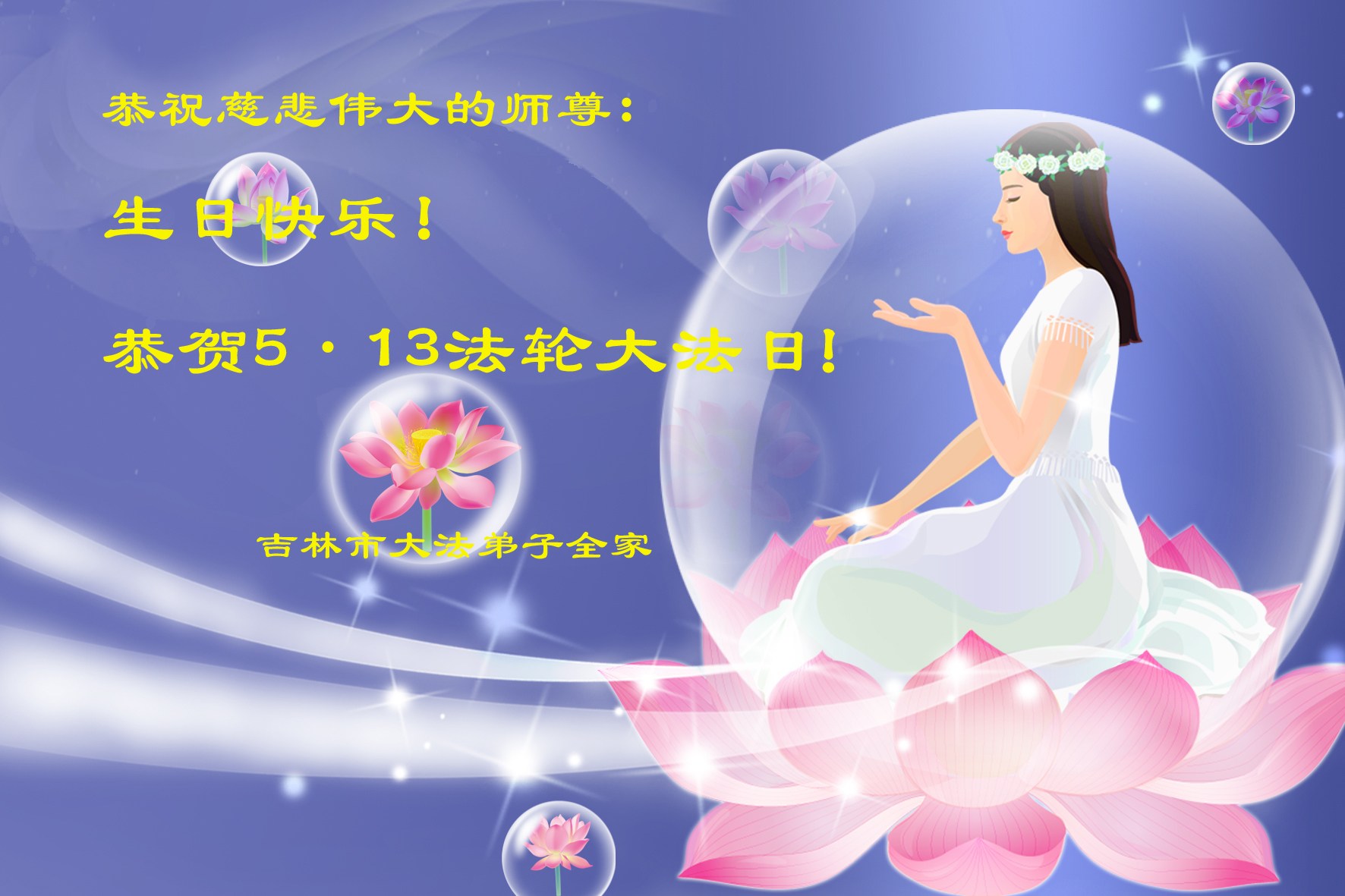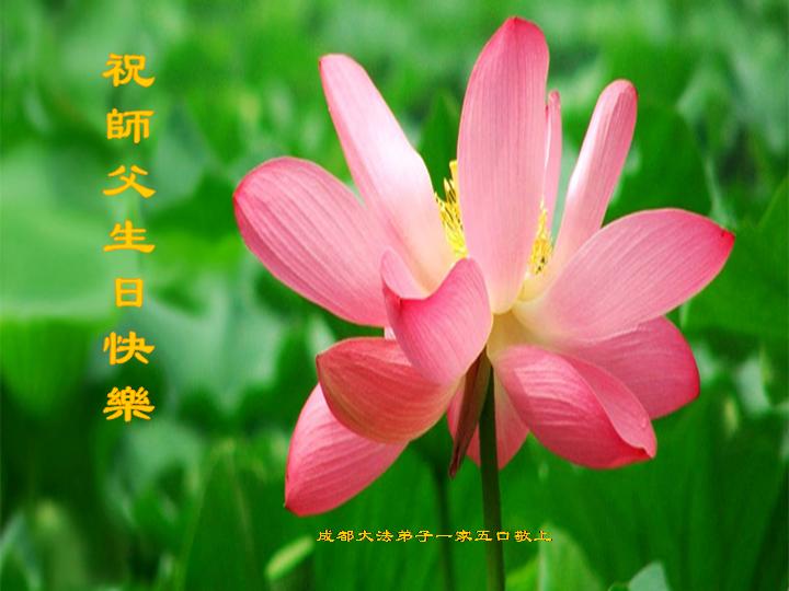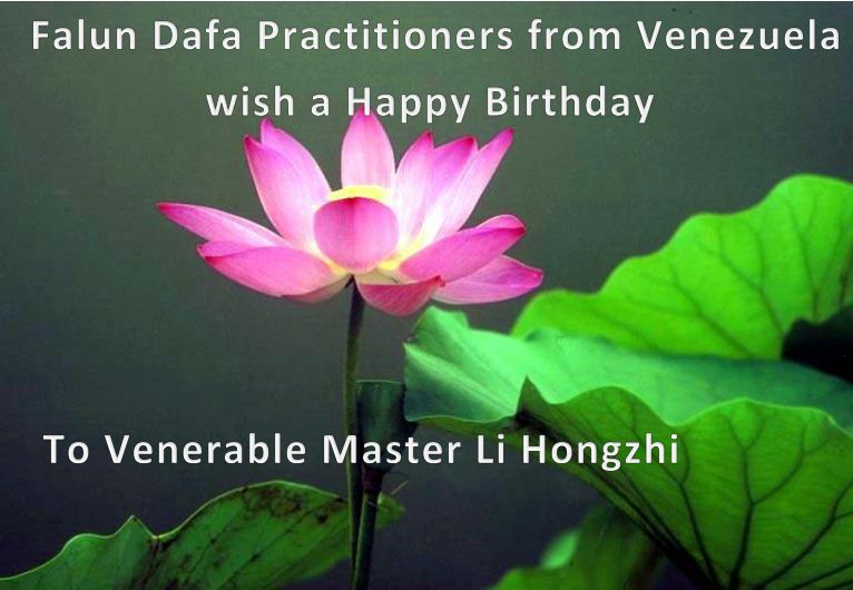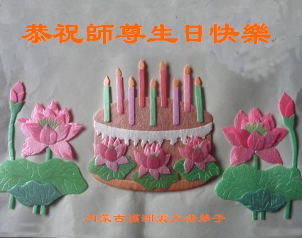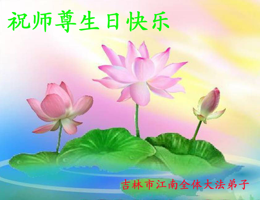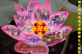 法会开始,主持人代表全体参加法会的大法弟子和全世界大法弟子及芸芸众生恭祝慈悲伟大的师尊生日快乐。