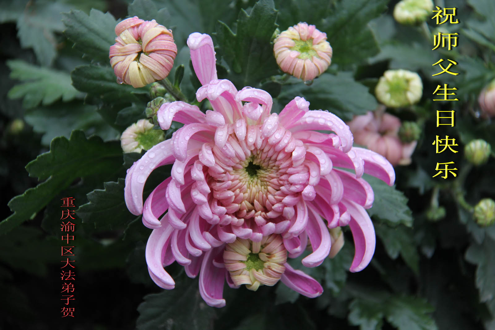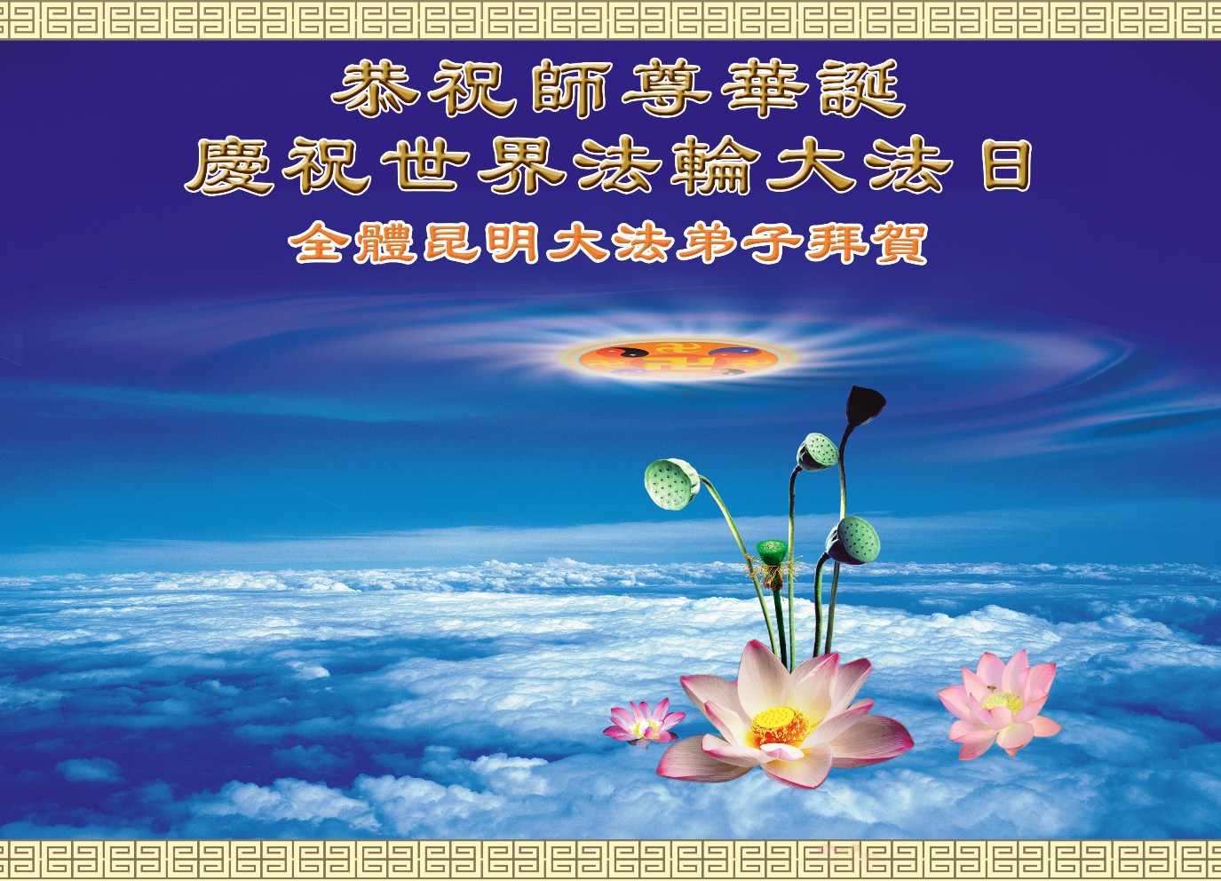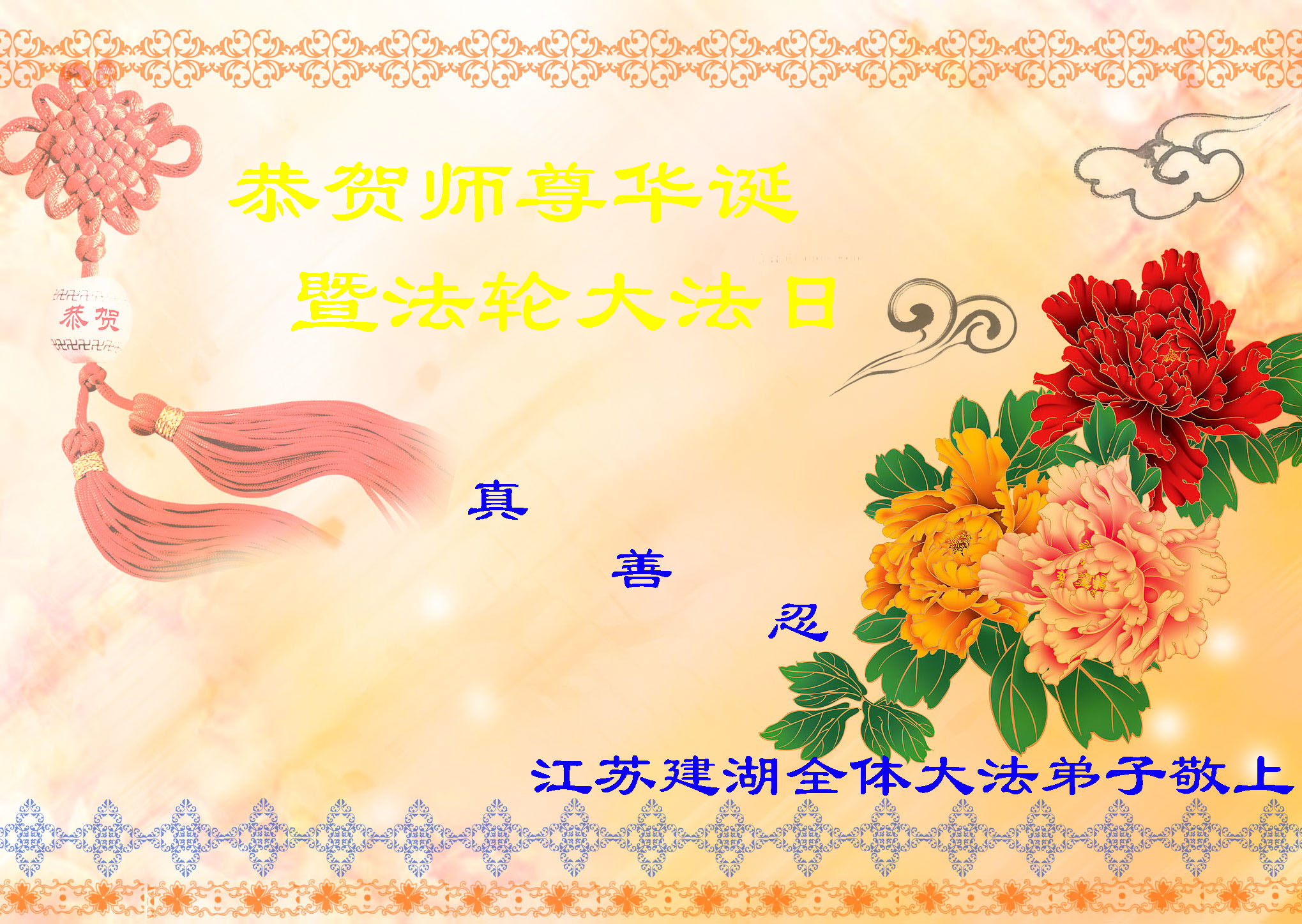 法会开始,主持人代表全体参加法会的大法弟子和全世界大法弟子及芸芸众生恭祝慈悲伟大的师尊生日快乐。
