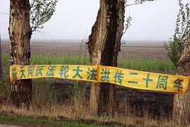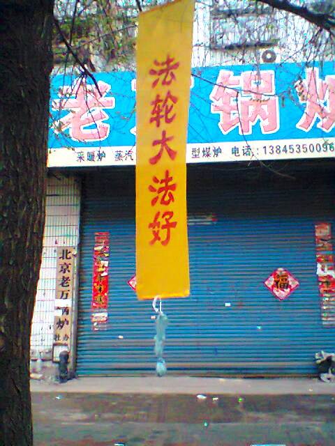 【明慧网二零一二年五月十五日】五月十三日是世界法轮大法日,今年的五月十三日标志着法轮大法洪传于世二十周年,大陆大法弟子以各种方式纪念这个神圣美好的日子,其中包括“挂条幅”。