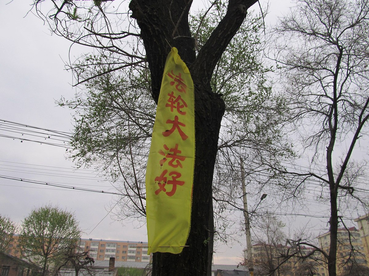 牡丹江市公园、路边和住宅小区内出现大量的真相条幅和不干胶贴。上面写着:“法轮大法好!”、“真善忍好!”、“法办周永康”。 等字样,向人们传递着真相。
