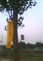 • 广东梅州大法弟子挂真相标语庆贺法轮大法日