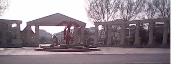 ![]() 大陆游客整团站在自由广场匾额下远远观看法轮功学员集体大炼功 |
