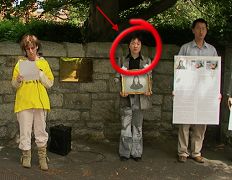 二零一二年五月二十一日,法轮功学员金昭宇应捷克大赦国际的邀请来到布拉格,为了营救被中共迫害的母亲陈真萍女士,和当地法轮功学员一起,以赠送毛绒玩具和递交请愿信件给中使馆方式,呼吁释放被中共关押的母亲。