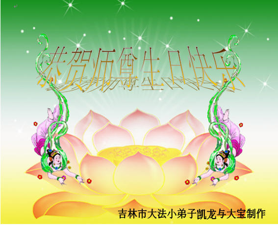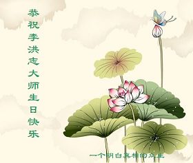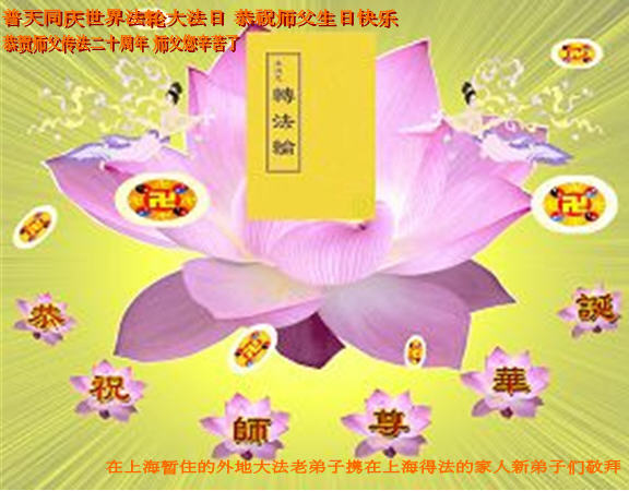 慈悲的李大师您好!我们代表家人以及所有的亲朋好友感谢您的救度大恩,感谢您赐予我们神圣的机会向您祝福,我们衷心的祝您生日愉快,感谢您带领着法轮功弟子在世界各地撒播着善良的福音!世风日下人心不古的现代世,由于您慈悲的洪传宇宙真善忍大法,每一份领土每一个角落都被您慈悲的佛光净化着,我们中华大地上下五千年美好的传统美德又复苏了,最美好的一切又重生了!此乃众生之福,众生之造化!叩拜李大师!