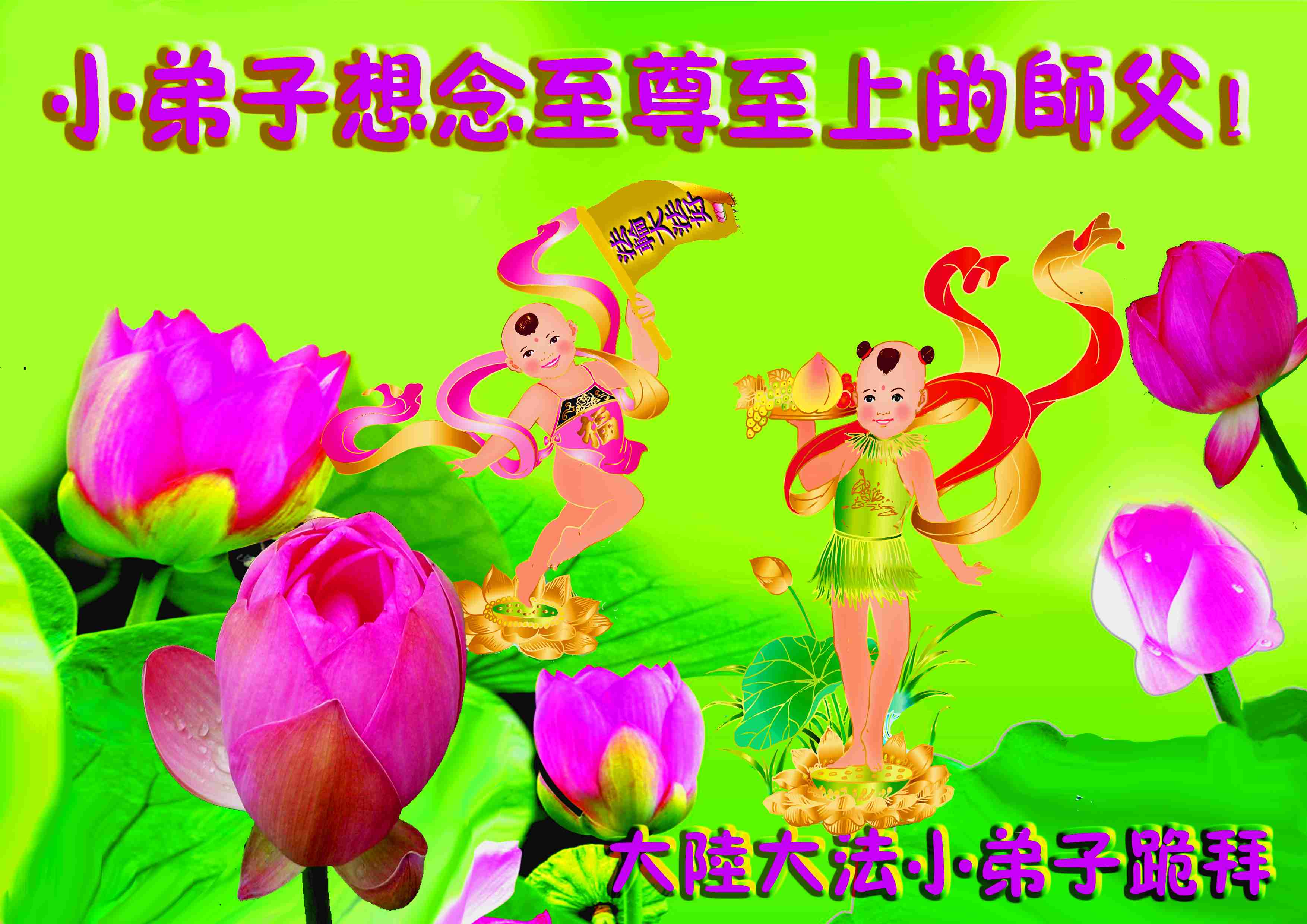 师尊洪法二十年,历尽艰辛,操尽了天上,人间的心,万般苦难一人承担,指引着正法的進程。大法弟子能走到今天,每个人都感到师父的关爱与帮助,神奇的事情,在每一个大法弟子身上体现。我们无病,无痛,无灾,无难,无忧,无虑,不惧严寒,不惧雨风。天下发生什么大事,都与我们无关,因为我们有师父的照看,有师父的保护。我们只有做好师父让做的三件事,向内找,修好自己一切都在其中,我们是世界上最幸福的人。但是这一切都是师父给的,滴水之恩,应涌泉相报,我们只有尽心,尽力的助师正法,放下自我,圆容大法,越到最后越精進,早日迎接师父回国,早日迎接法正人间的到来。我们全体大法弟子非常想念您。