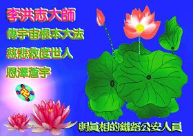 炼功的都是些正直善良的人!希望法轮功继续发扬。我虽然没有下决心修炼,但是,我一定要做个好人,我每时每刻都念着“法轮大法好”和“真善忍好”呢!在这个特殊的日子,我祝福李大师生日快乐!