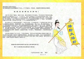 另一位营救电话组成员表示,“大陆民众思想变化很大、很快!很容易就声明退出中共相关组织。而且刚才遇到一位很善良的先生,很痛快地用真名退了,还说以前如果听到这样的消息可能不会相信,现在都相信了,而且说:看到过门上贴的传单,知道《明慧网》,以后会仔细看看。”
