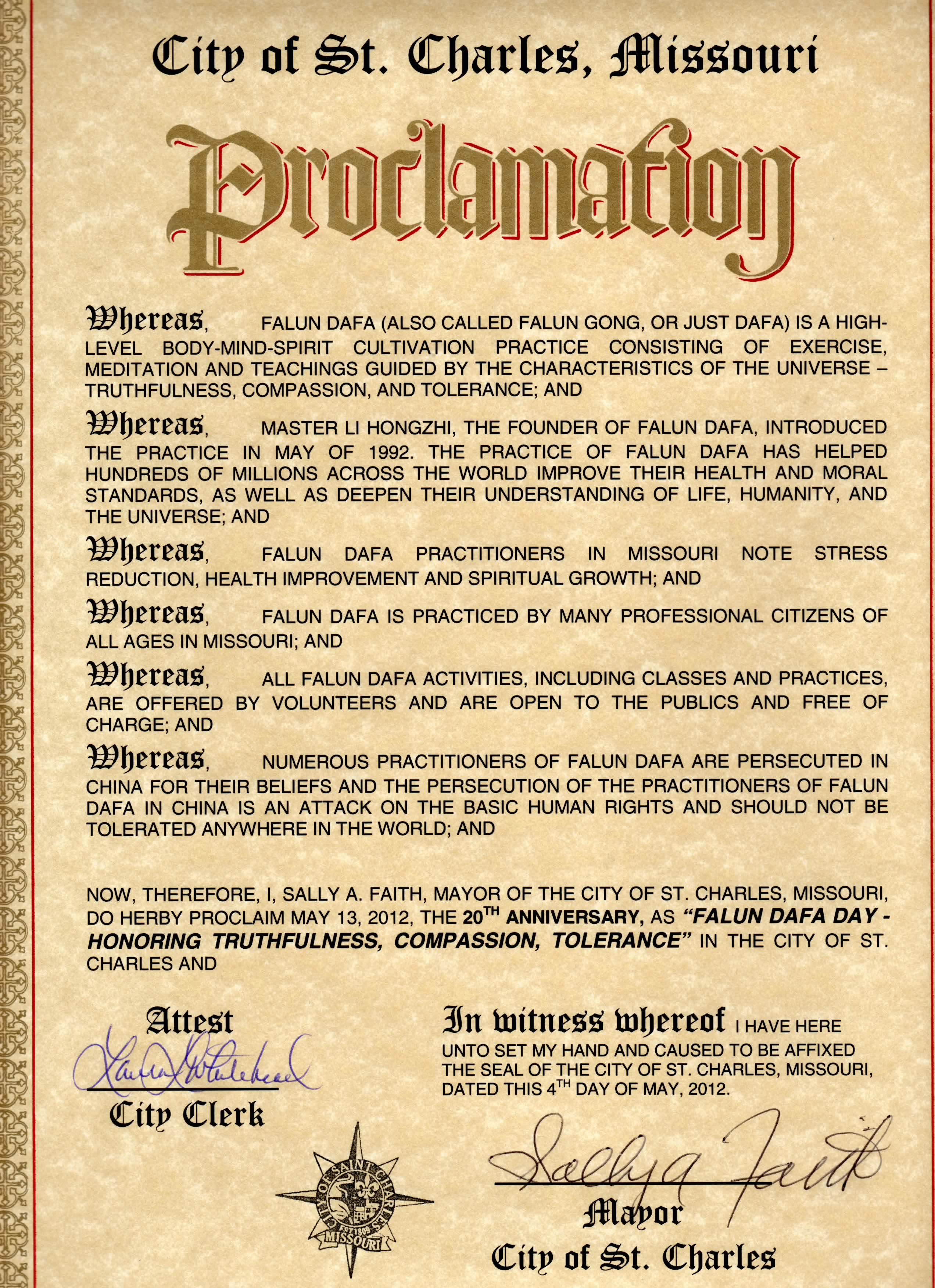 鉴于,在其创始人李洪志大师的引导下,法轮大法已经帮助其修炼者改善健康,纯净心灵,提升精神和加深领悟;