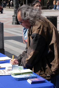 有位拿着《大纪元》专刊的伯伯,斥责中共迫害善良的修炼者:“他们都是强身健体的一个机构,因为很多共产党员都是法轮功学员,所以它(中共)就怕了。我都是同情法轮功的。”