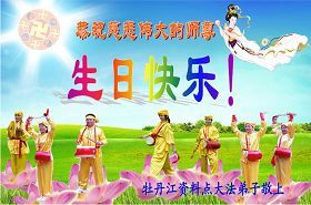 1、牡丹江大法弟子祝贺师尊生日快乐,庆祝5.13世界法轮大法日