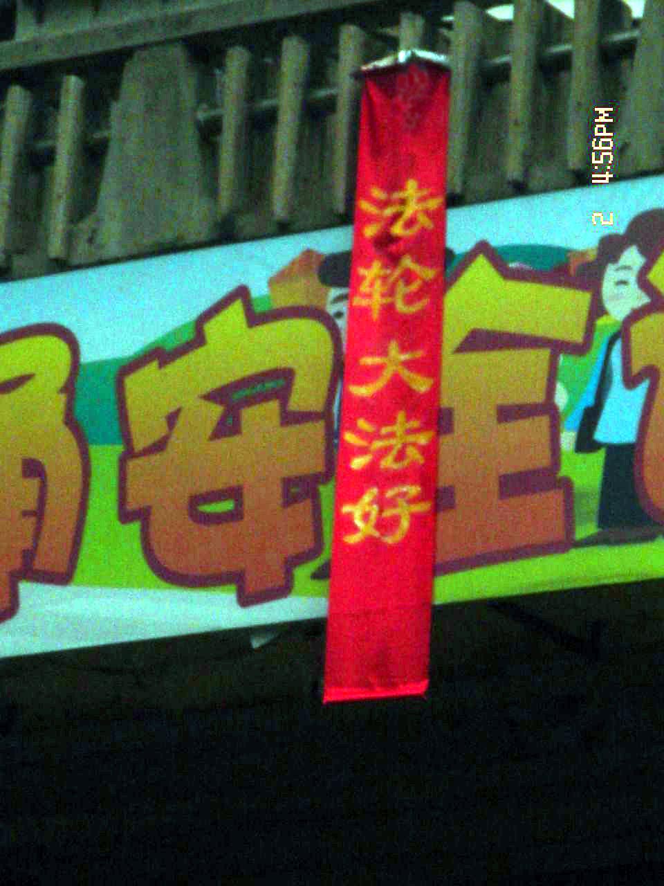 一个小伙子在一位举横幅的学员旁,跟着走了几条马路。队伍停下来时,他迫不及待地问,“你的横幅上写法轮大法——性命双修之路。我到哪儿学呀,怎么学呀?”