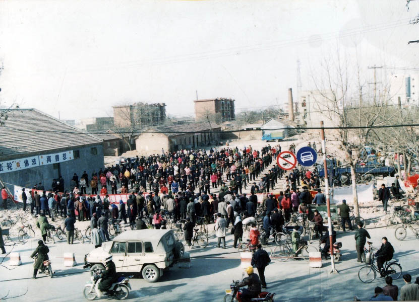 【明慧网二零零八年八月五日】一九九八年冬季,山东德州陵县大法弟子在陵县县城内原百货一零的拆迁废墟上(现在是陵县“金三角”,对面即是县政府办公楼)平整出一块洪法炼功的小广场,成为陵县弘传法轮大法的一片净土,吸引了许多有缘之士走入了法轮大法的修炼正途。到一九九九年七二零中共迫害前,参加炼功的大法学员已有上千人。