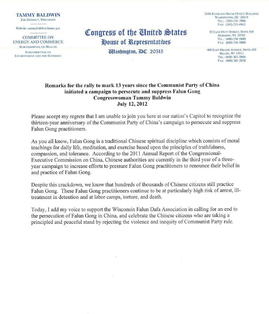 集会还宣读了欧洲议会副主席爱德华‧麦克米兰-斯考特(Edward McMillan-Scott)及欧盟议员和人权委员会副主席的支持中国一亿两千万的三退大潮的连署信。他们认为由法轮功修炼者推动的退党运动为中国民众提供了一个精神觉醒,解脱共产精神枷锁,为自己创造美好未来的机会。