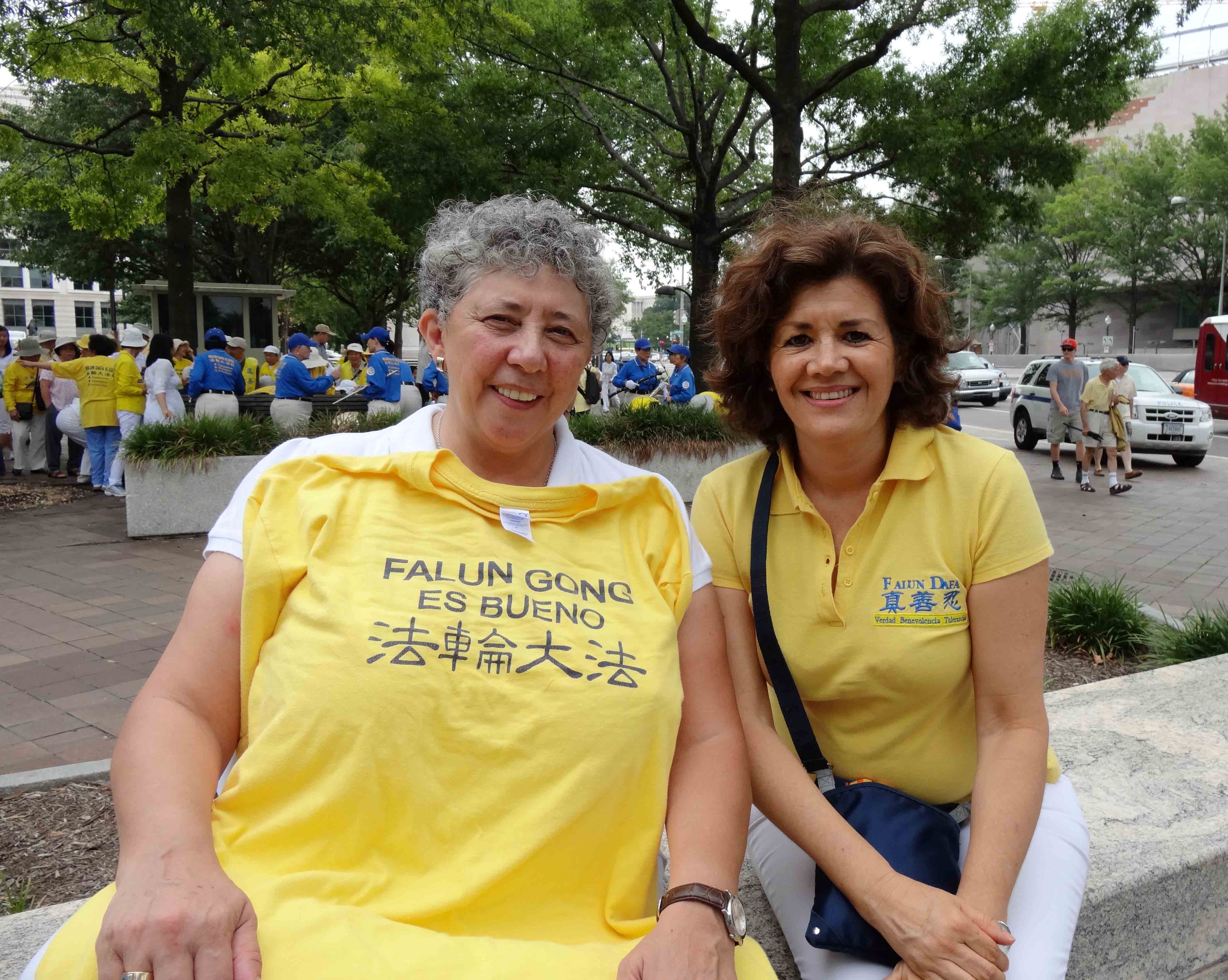 ![]() 玛璐(Maru)女士(右)与同是来自墨西哥的大法学员 |