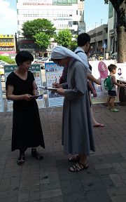 八月正是休假旅游的时节,而法轮功学员顶着烈日向韩国民众传播真相,并呼吁各界伸出援手,共同制止中共的暴行。