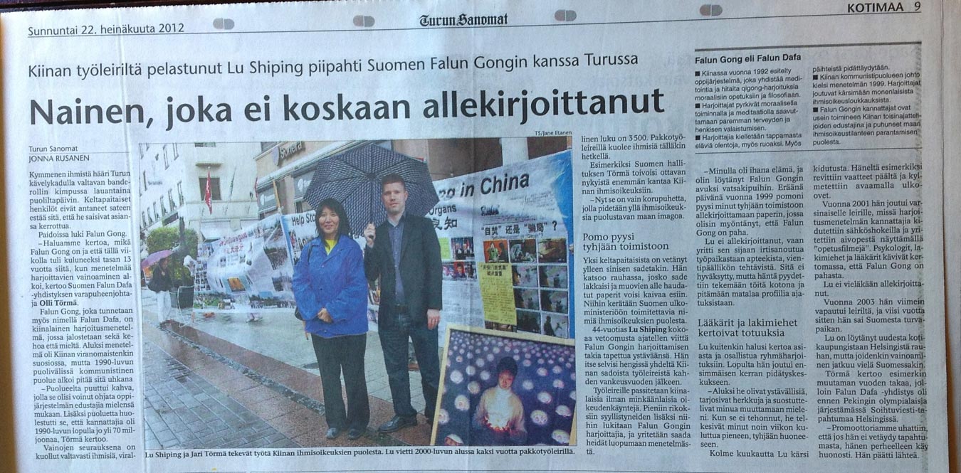 ![]() 芬兰《图尔库日报》对法轮功的报道 |