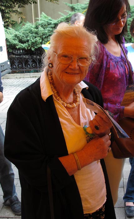 有一位老年妇女,在征签簿上签上名之后,来到法轮功学员面前说:“这个表格没有要求填写年龄,但我把我的年龄写上去了,我今年八十四岁了,第一次接触到法轮功,我很喜欢这个功法,我一听这个音乐就知道法轮大法好,如今的世界上有太多的噪音,可这个音乐让人安静,还会把人心中的烦恼去掉,这是多么好啊。我签名反对中共迫害法轮功,我相信我会看到中共倒台的。别看我八十四岁,我会看到的。”