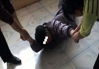 比如:把张勤反背双手逼坐在小凳子上,一天到晚一种姿势,不许动,动一下就招来“包夹”犯人的打骂、恐吓;把他用带有铁环的绳子捆绑起来,腰间绕一圈,身上交叉两圈,捆绑在三平方米小屋内的床上,吃饭、睡觉、大小便都在其中,一年到头晒不到太阳,没人说话,不见天日,伙食极差,而且一关就是两年!指使犯人群殴张勤五次,至今身上伤痕累累……两年多的摧残,让原本年轻、精神的张勤身心俱惫,头发完全变白。