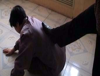 六月九日晚,李建魁被劫持到临夏县看守所。刚进看守所就被恶警指导员陕玉平(音)拳打脚踢,一顿暴打。第二天,陕玉平和看守所所长林进喜又联合对李建魁施暴,李建魁的腿、胸部被踢得青一块紫一块,当时头部受伤。接着看守所副所长胡某拿用水浸泡过的绳子暴打李建魁。