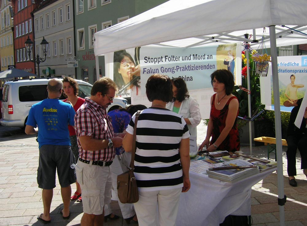 位于德国多瑙河畔的多瑙沃尔特(Donauwoerth)小镇建于公元九七五年,曾是德意志帝国重要的贸易集散地,有着众多古典建筑的多瑙沃尔特如今是一个吸引人的旅游之地。九月九日,在这里举行了一个富有乡土特色的生态集市,周围地区的人们纷纷来这里赶集。许多赶集的德国人第一次了解到了发生在中国对法轮功的残酷迫害。