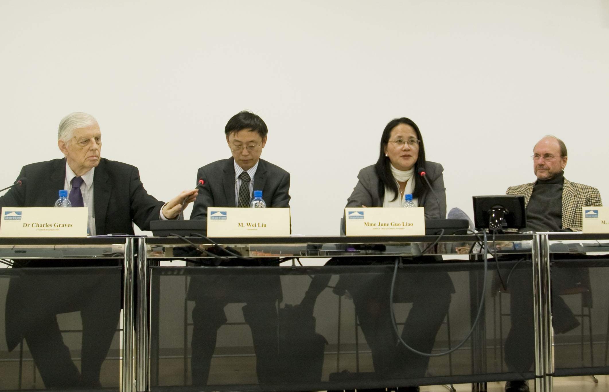 ![]() 前联合国多元信仰国际组织(Interfaith International)主席查尔斯•格雷夫斯先生(左一)主持在瑞士国家记者俱乐部的新闻发布会 |