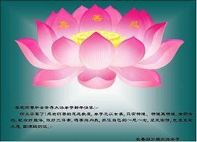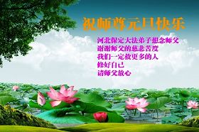每逢佳节,都能看到那一张张制作精美的贺卡发往明慧,向师尊恭贺!那一篇篇短文、一首首诗句把弟子的心意向师尊表达的淋漓尽致。而我们不会做贺卡、不会写诗句。但我们同样沐浴在佛恩浩荡中。在师尊的慈悲呵护下,一定努力做好我们该做的。