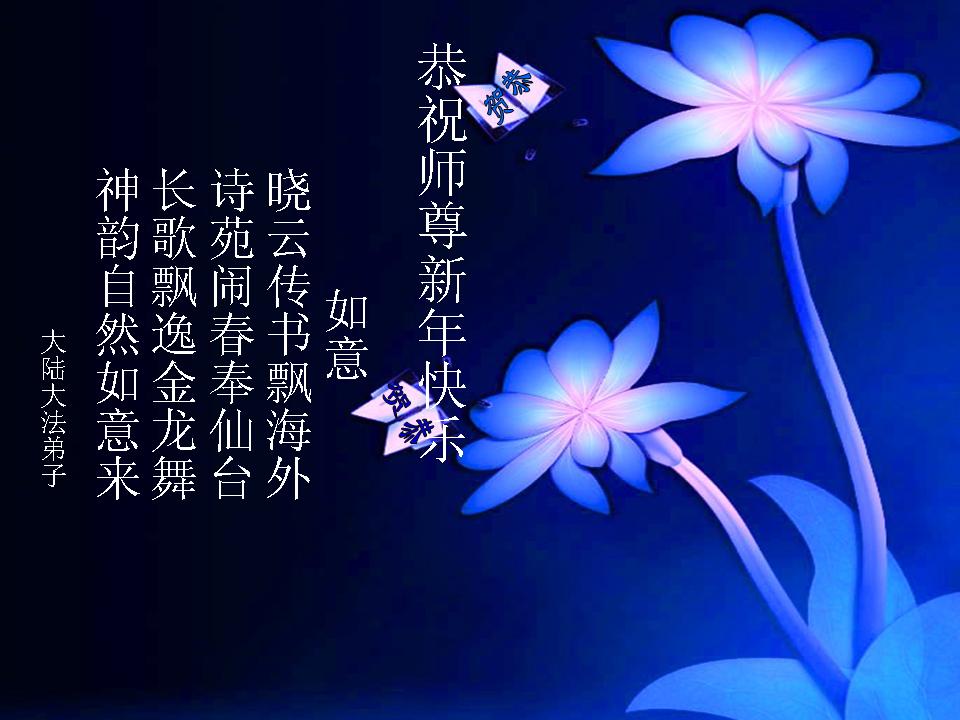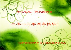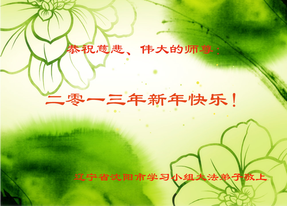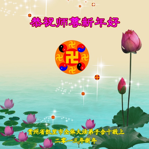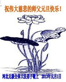 【明慧网二零一三年一月三日】从二零零二年开始,世界各地的大法弟子纷纷在元旦之际,将发自内心的节日贺词、自制的贺卡、诗歌等寄给明慧网,向慈悲无私的师尊李洪志先生恭祝元旦快乐。以下是部份大陆大法弟子二零一三年元旦的贺词贺卡。