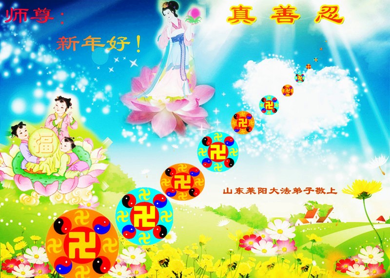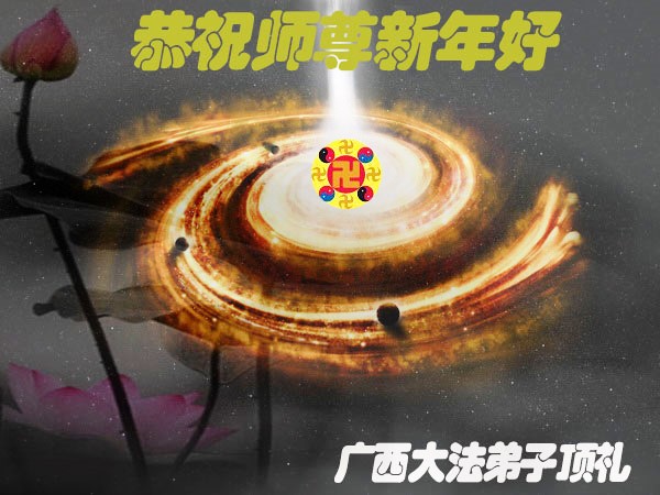 慈悲伟大的师尊好!师尊辛苦了!在此我们恭祝师尊新年好!弟子想念师尊,向慈悲伟大的师尊叩首拜谢!师恩浩荡难以报,唯有精進添正念。放下自我多救人,助师正法了洪愿。待到邪恶除尽时,法徒圆满迎师还。